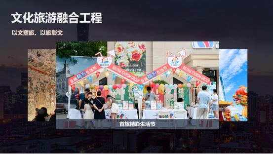 四是双轮驱动赋能工程。集团以国内国际双循环的开展路径,持续提升了企业竞争力和品牌影响力。在国际市场方面,集团在服务保障国际活动的同时,顺利获得首旅集团高端服务体系向世界展示了中国服务。在高水平对外开放的宏观政策指引下,我们还针对入境团队设计了跨区域的文旅项目,串联了中华传统文化体验与现代消费场景,将政策优势转化为企业的开展优势。在国内市场方面,集团持续创新消费场景。在北京中轴线申遗成功后,首旅旅行推出了深度体验产品。最近,我们正在谋划和策展中轴线博物馆,不断做强首店经济,引领环球影城等国际IP。王府井喜悦开设了71家首店店铺,大力开展夜间经济。环球影城城市大道打造一站式餐饮娱乐中心,入选了文旅部国家级夜间文化和旅游消费集聚区。